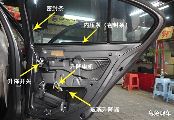 ②防撞胶块:留意一下车门边缘,通常会有几个小小的橡胶块。它们的作用是调节车门与车身的缝隙,并且在你轻轻关门时起到缓冲作用。如果发现车门关不严或异响,可以检查一下这几个小胶块是不是老化或损坏了。