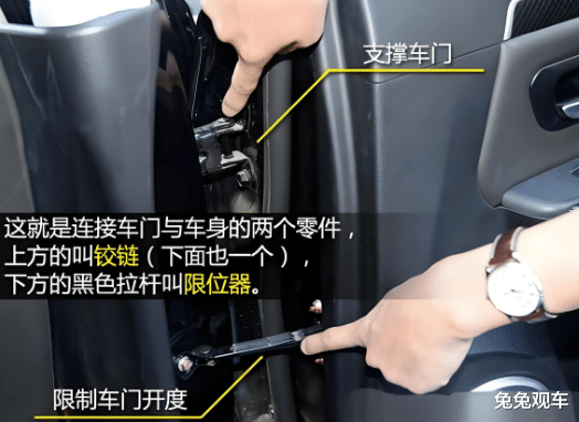 你为什么能把车门固定在某个角度,而不会让它被风吹得来回晃荡?功劳要归功于车门铰链里的限位器。它通常是一根带有凹槽的金属杆。当你轻轻推门时,它会有一个明显的“顿挫感”,那就是限位器卡在了不同的凹槽里。所以,下次开车门时,请温柔地推到最后那个限位点,不要用蛮力“甩”开门,否则长期下来会加速限位器的磨损,导致车门松松垮垮。