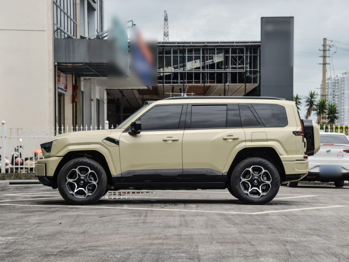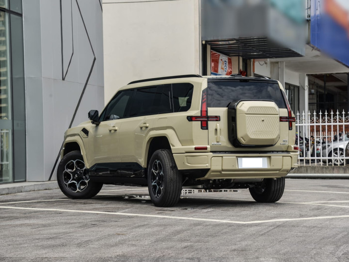 再来看车身侧面部分,5100mm的车长与3005mm轴距赋予M817 Max+修长的车身轮廓,但通过悬浮式车顶、隐藏式门把手等细节设计,视觉上并不显笨重。侧裙处的金属踏板与轮拱外扩设计延续了硬派风格,而可选装的“黑武士”配色方案则提升了运动气质。车高1899mm配合228mm最小离地间隙,既保证了车内空间充裕性,又避免了城市停车场景的尴尬。尺寸方面,猛士M817长宽高分别为5100/1998/1919空簧版(1899螺簧版)毫米,轴距为3005毫米。