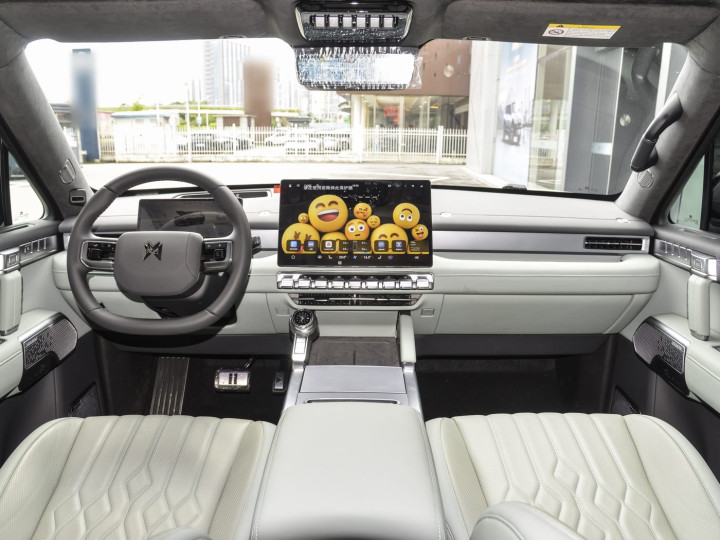 进入车内,车内采用Nappa真皮座椅与金属饰板混搭,15.6英寸中控屏搭载HarmonyOS系统,支持手机-车机无缝流转。前排座椅配备通风/加热/按摩功能,副驾“女王座驾”模式可一键放平形成1.7米躺椅。后排腿部空间接近两拳,配合全景天窗与多层隔音玻璃,长途乘坐舒适性媲美行政级轿车。独创的“露营模式”可联动座椅放倒、空调调节与氛围灯,2.1米纯平空间秒变移动卧室。